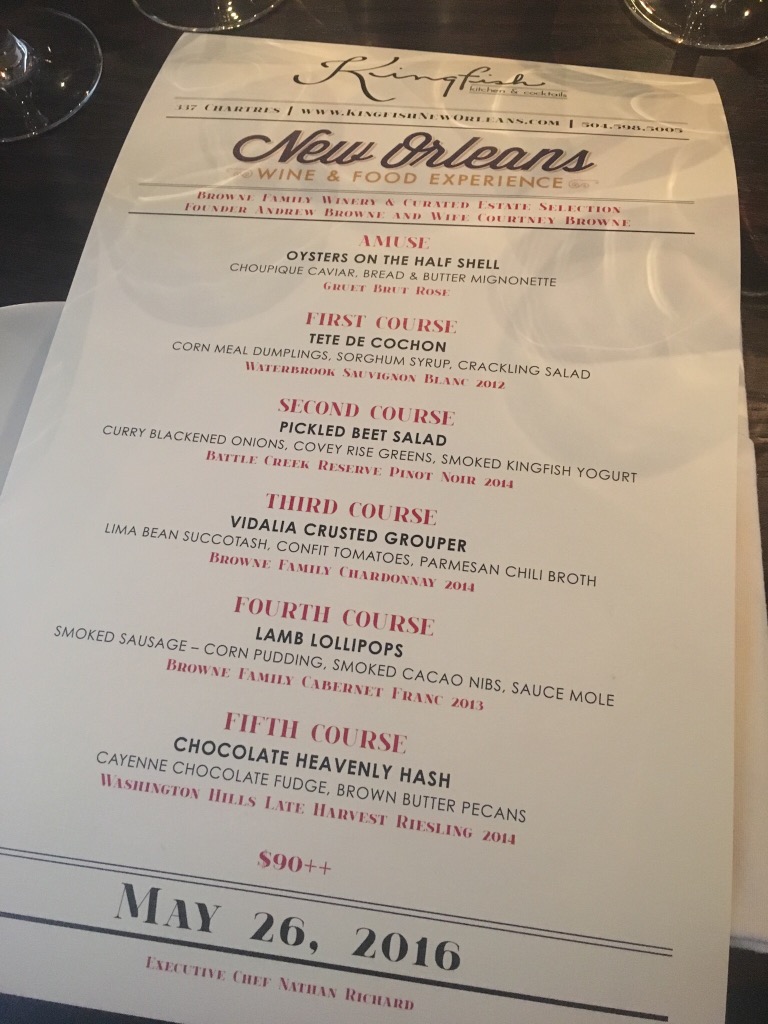Thursday night found us at Kingfish for a phenomenal dinner paired with wines from Browne Family Vineyard. The food was top notch and the wine pairings were perfect. We found some new wines we need to buy as well.