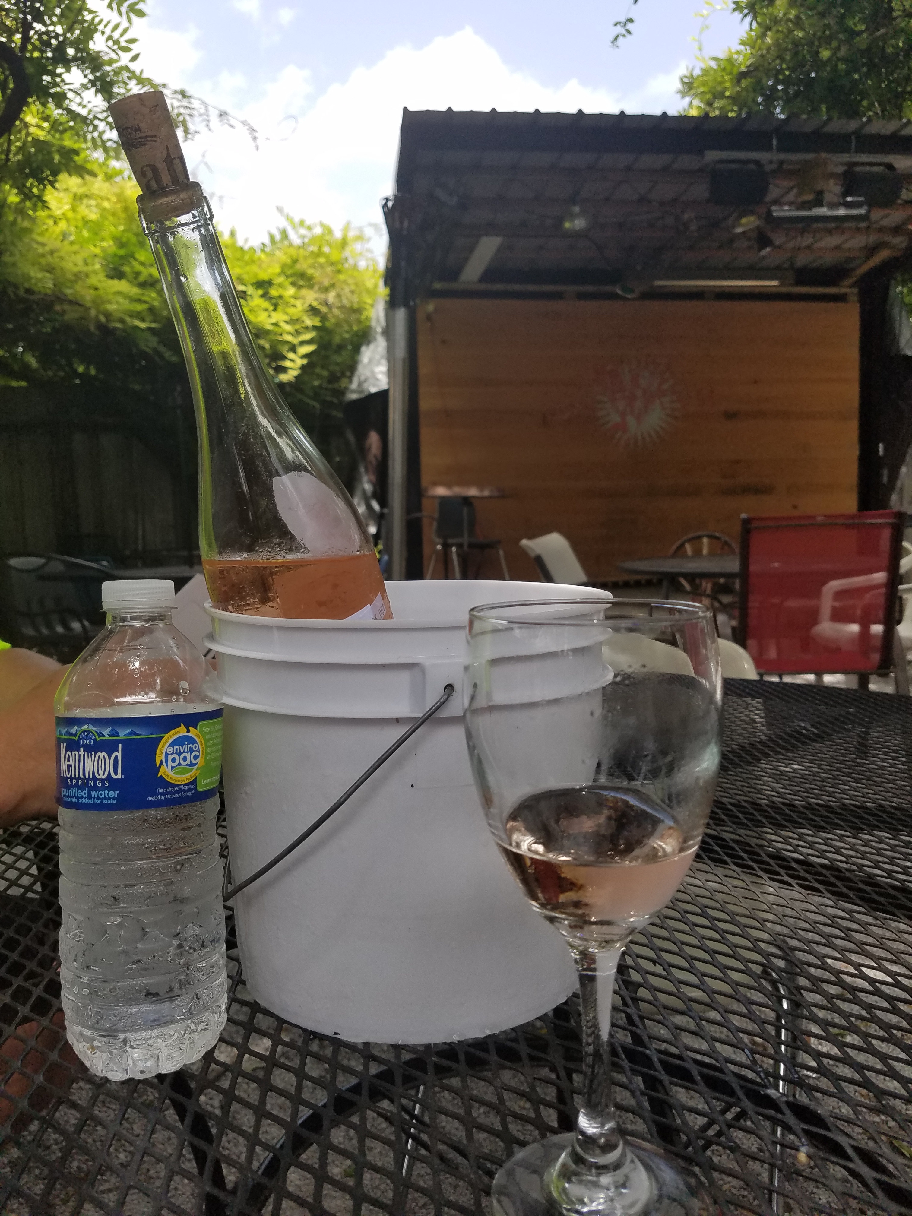 Riding from the Warehouse District, through the Quarter with a quick work stop for Chuck, then along Crescent Park and making pit stop number 1 at Bacchanal, our morning started off great. While at Bacchanal, we ran into a friend and former neighbor and ended up with another bottle of sparkling rose alongside some great conversation.