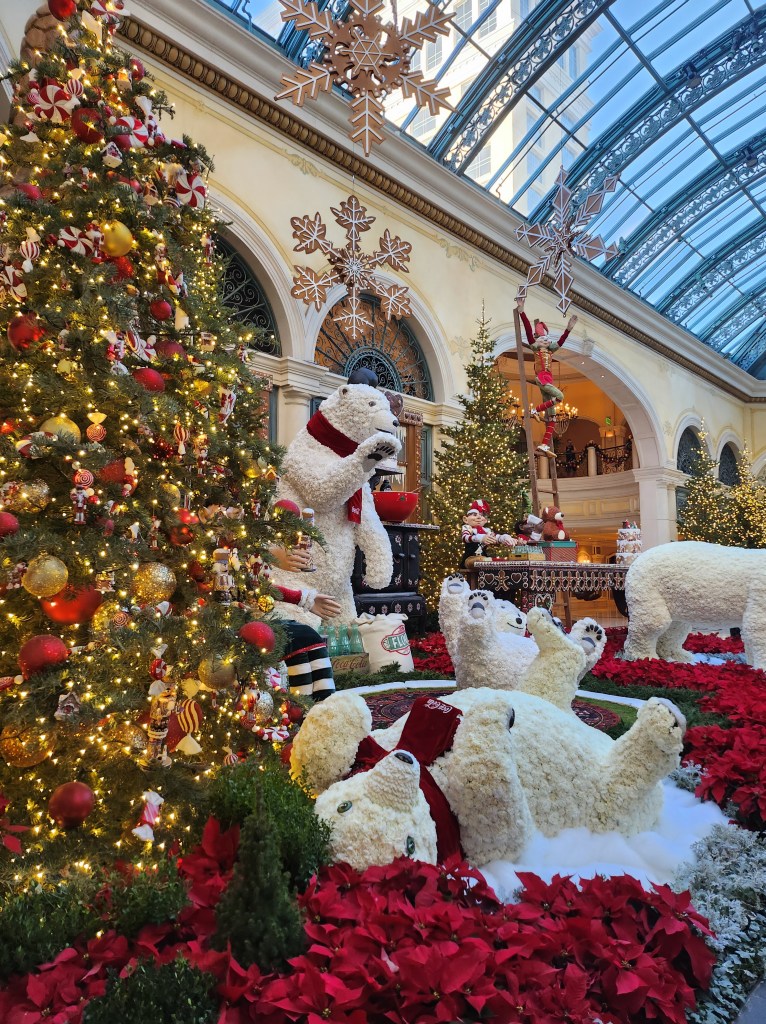 Las Vegas was colder than it normally is in mid-December, so we ended up walking as much as we could through the casinos and shops while exploring and checking out the holiday decorations. Our favorite was the Bellagio Conservatory. They always do a beautiful job and we love checking it out every trip.