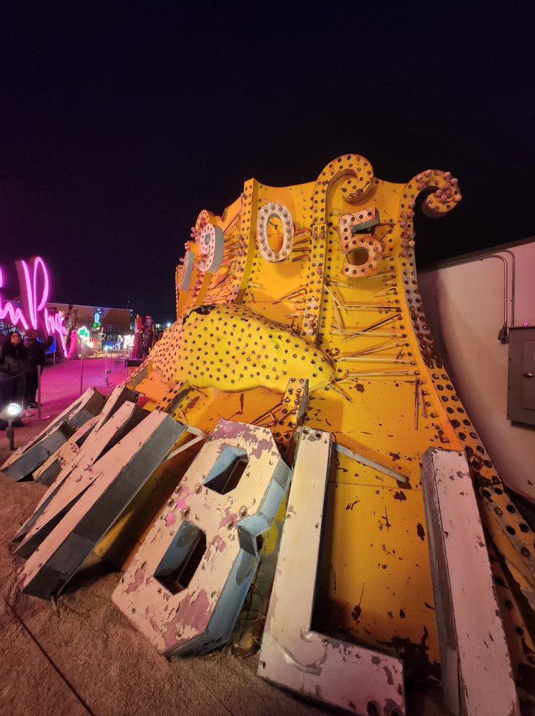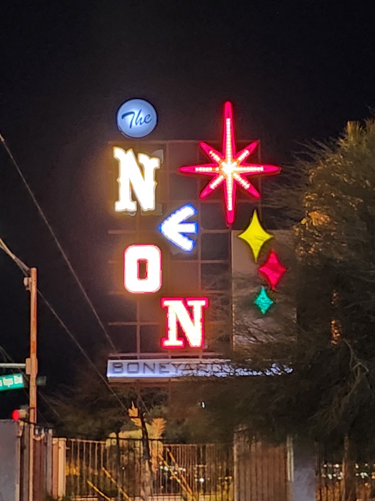 We finished our trip on Monday night with a trek to the Neon Museum. This had long been on our list of places to check out and I’m so glad we went. Although it was still cold out, it was a bit “warmer” than the weekend and we were able to thoroughly enjoy our tour. I highly recommend checking out this place if you are in Las Vegas. The stories from our guide were outstanding and the signs are really interesting to see up close.