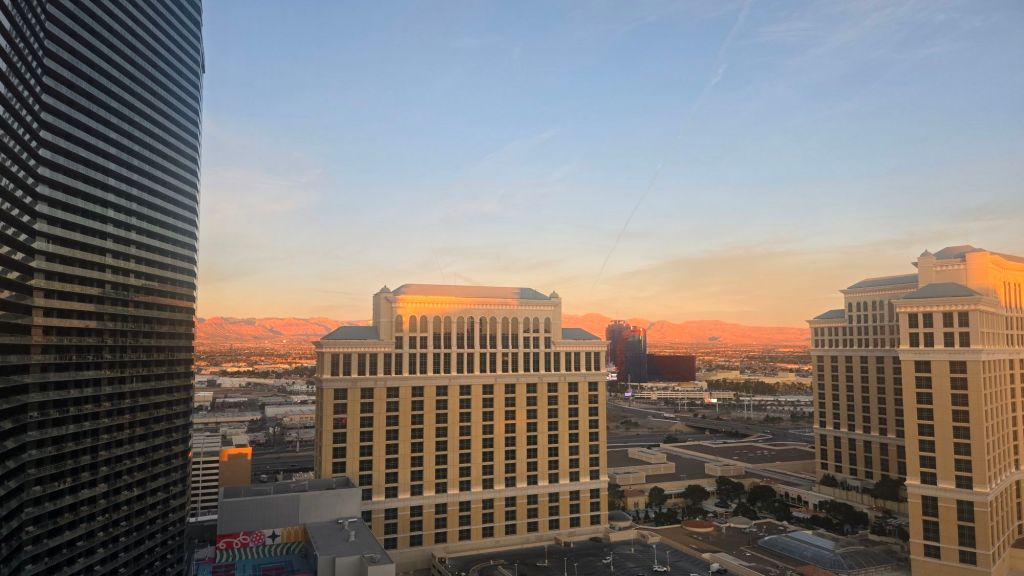 To my surprise, the Cosmopolitan had a room ready for us around 10:30 am and after a mishap on my end with self-printing the room keys, I got that fixed at the front desk and we made our way to our room. The suite was really nice and we had a terrace with a lovely view of the mountains. It’s really our favorite view when we come to Vegas.